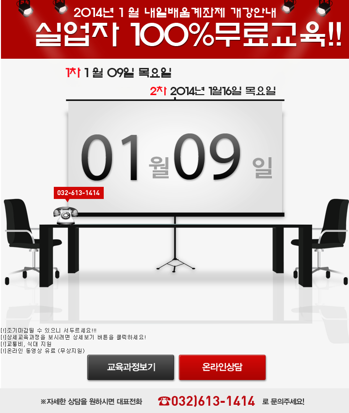 [공지사항] 2014년 1월 9일 내일배움카드 개강 안내