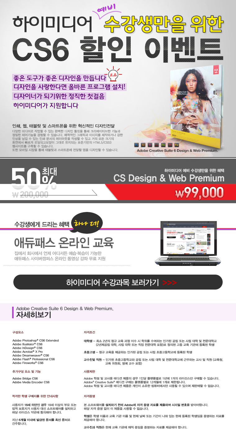 어도비 CS6 (교육용) 50% 할인 이벤트